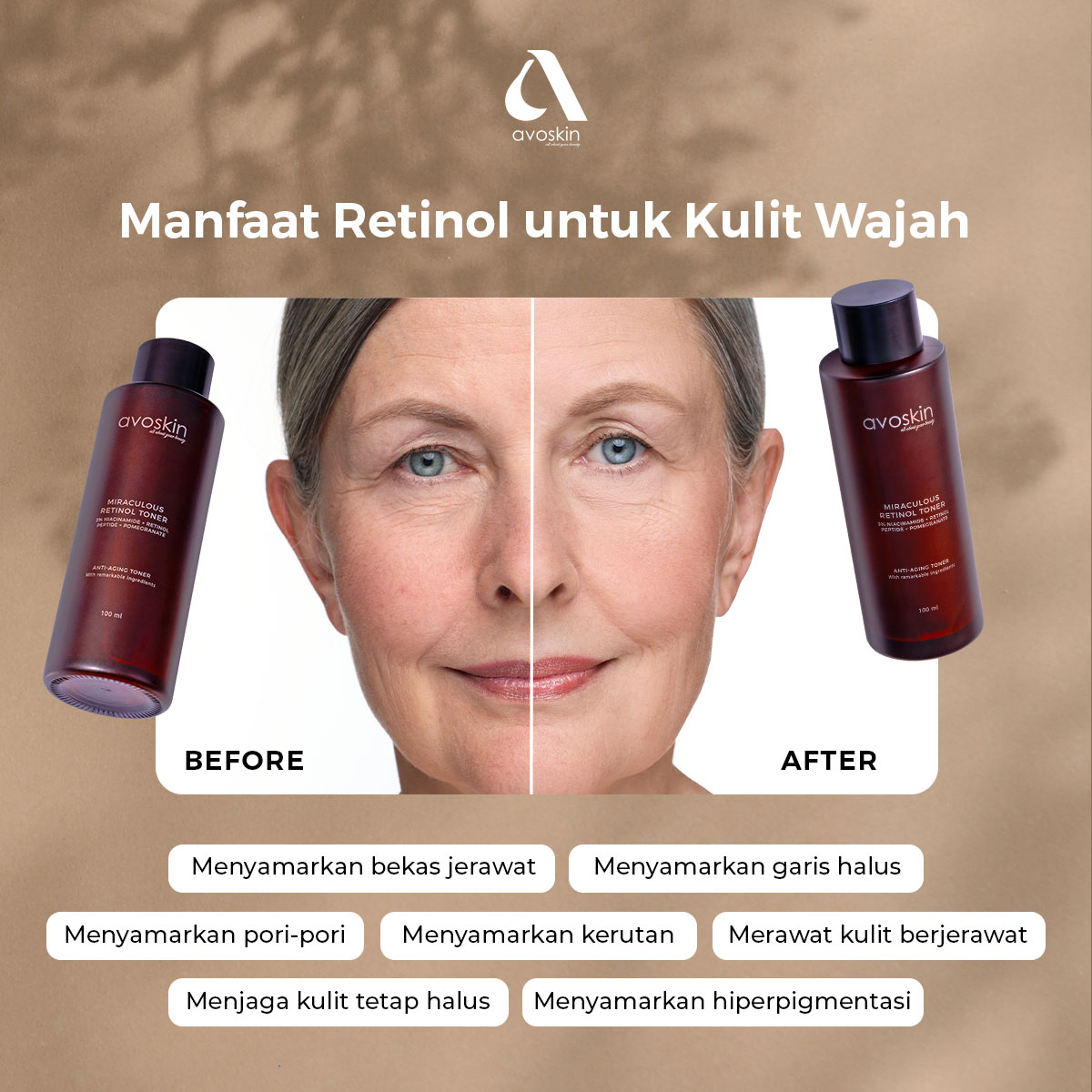 Sahabat AVO, fungsi Retinol untuk kulit wajah memang sangat efektif untuk mengatasi berbagai masalah kulit. Mulai dari jerawat, noda, pigmentasi, sampai kerutan dan tekstur kulit. Menarinya, untuk mendapatkan kebaikan Retinol ini, kamu bisa menemukannya pada Miracilous Retinol Toner.